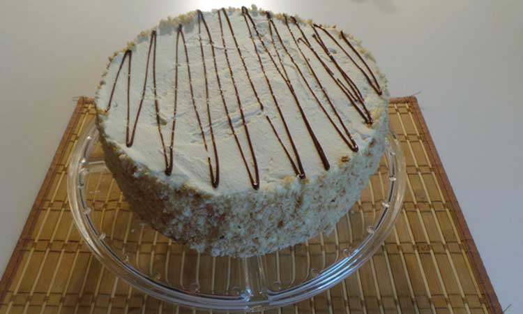 A Hungarian and Austrian hazelnut meringue cake with butter cream.