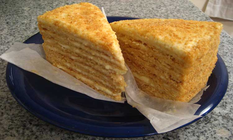 Napoleon cake is very popular in Russia and often served on birthdays, on New Year's Day as well as other festive occasions. Similar to a French Mille-Feuille (thousand layer) cake, a.k.a. Custard slice elsewhere, it has been adapted, adopted and fully nationalised by Russians, as The Russian Cake. Life is not fulfilling till you've had one.
